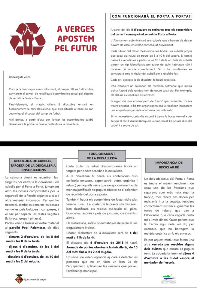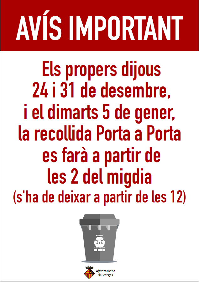 25/11/2025 - 17/12/2025Us informem que s’ha realitzat el canvi de finestres a sala de plens de l’Ajuntament de Verges. Aquesta actuació forma part del programa “Del Pla a l’acció” de la Diputació de Girona (exp. 2024/3806), que atorga subvencions bianuals per a millores d’eficiència energètica en edificis municipals. El cost total de la instal·lació dels nous tancaments […]