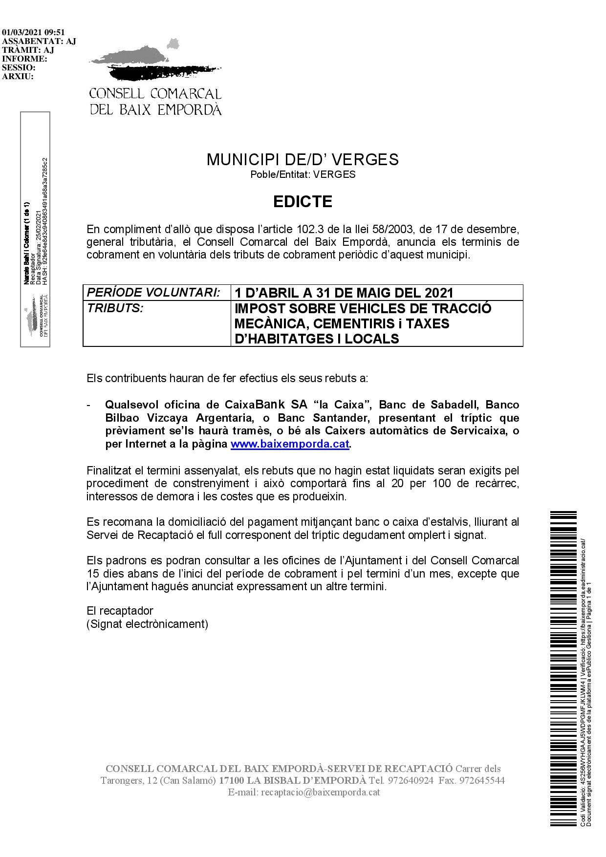 Verifica els documents emesos per l'ajuntament a través d'aquest enllaç.
