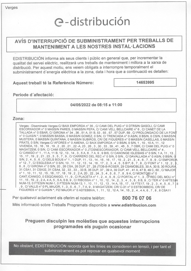 Els municipis que depenen de l’aqüífer del Baix Ter, entre els quals s’inclou Verges, es troben en estat d’alerta per sequera, fet que indica que les reserves d’aigua estan al 40%. Les restriccions impliquen limitar el consum mitjà d’aigua per habitant i dia a 250 litres. També hi ha limitacions per omplir piscines, regar […]
