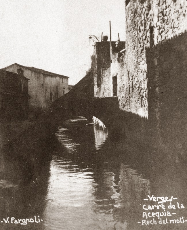 Le cours d’eau du Moulin ou canal de Setmenat naît au barrage de Colomers et débouche à l’Escala. La première mention du canal et du moulin est faite au XIIIe siècle ; Plus tard, avec la construction du cours d’eau de l’Estany, le village prend économiquement de l’importance. Le cours d’eau de Verges avait un double objectif, il constituait un obstacle aux attaques a la muraille et il était utilisé pour arroser les terrains cultivés, abreuver le bétail, laver le linge et bouger les meules du moulin à farine et à riz.