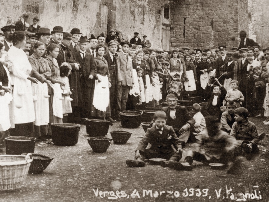 À cette époque, ce type de repas, qui était un acte de générosité envers les plus démunis, était connu sous le nom de «soupe des pauvres». À Verges, il existe deux théories sur cette coutume : l’une s’appuie sur l’idée qu’elle remonte au Moyen Âge, lorsque les seigneurs distribuaient un repas à leurs vassaux après la récolte, au lieu de rétribuer ce service; L’autre théorie qui soutient que la coutume consistait à vider les garde-manger avant de les remplir à nouveau au printemps. De nos jours, la Soupe de Verges est devenue une fête populaire qui clôture le cycle de Carnaval.