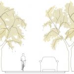 - Franja verda per a la plantació d’arbrat, annexa a la vorera nord. Aquesta disposició garanteix ombra a l’espai de vorera, protecció solar natural a les façanes des edificis i millora l’estètica del paisatge urbà.