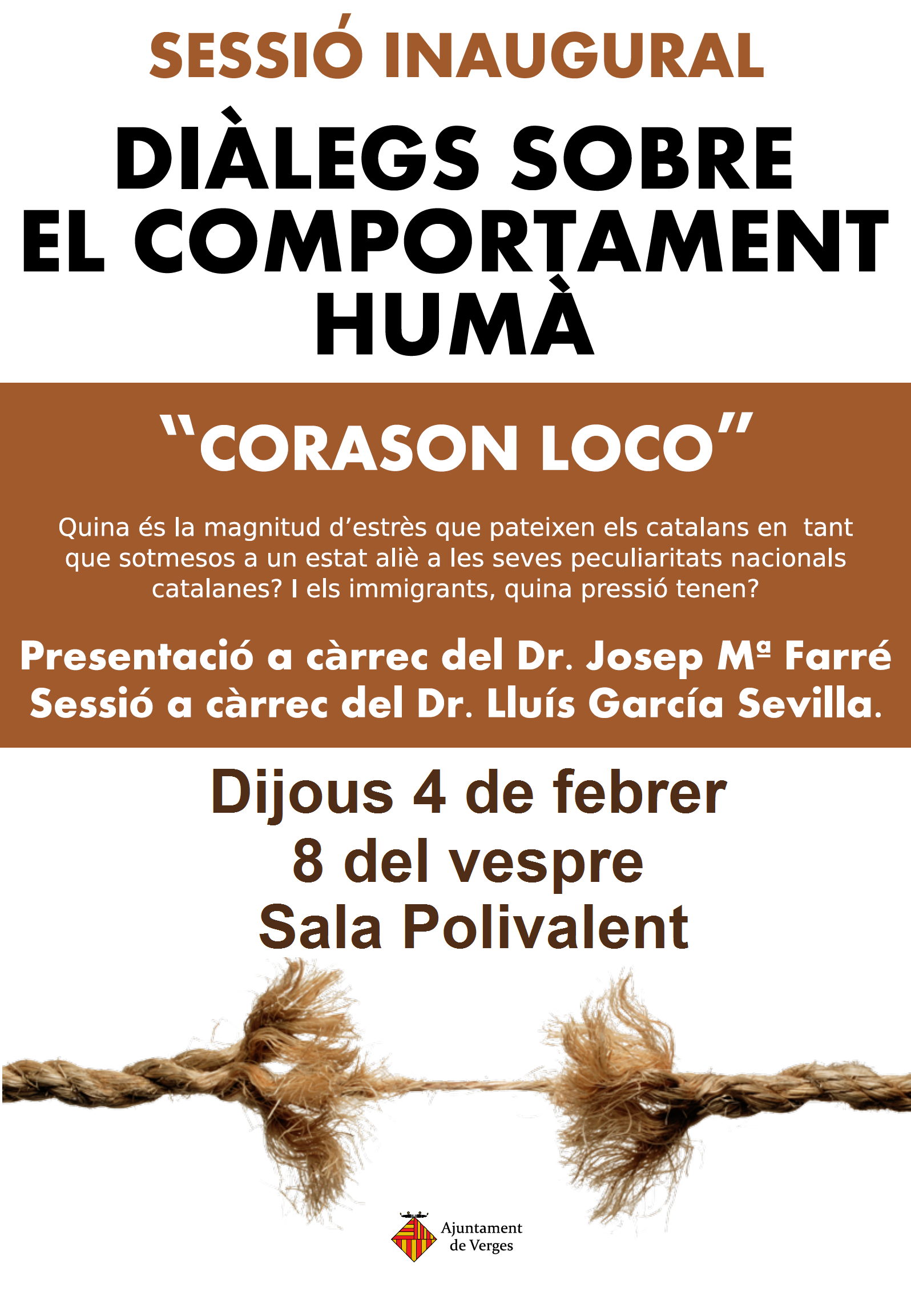 Torna el cicle de xerrades “Diàlegs sobre el comportament humà”, un clàssic ja consolidat al nostre municipi. Serà el proper dijous 27 de novembre, a les 8 del vespre a Sala Polivalent de Verges. Aquesta sisena sessió, porta per títol “Atrapats pel dubte: el trastorn obsessiu/compulsiu (TOC)” i anirà a càrrec del nostre estimat Dr. […]