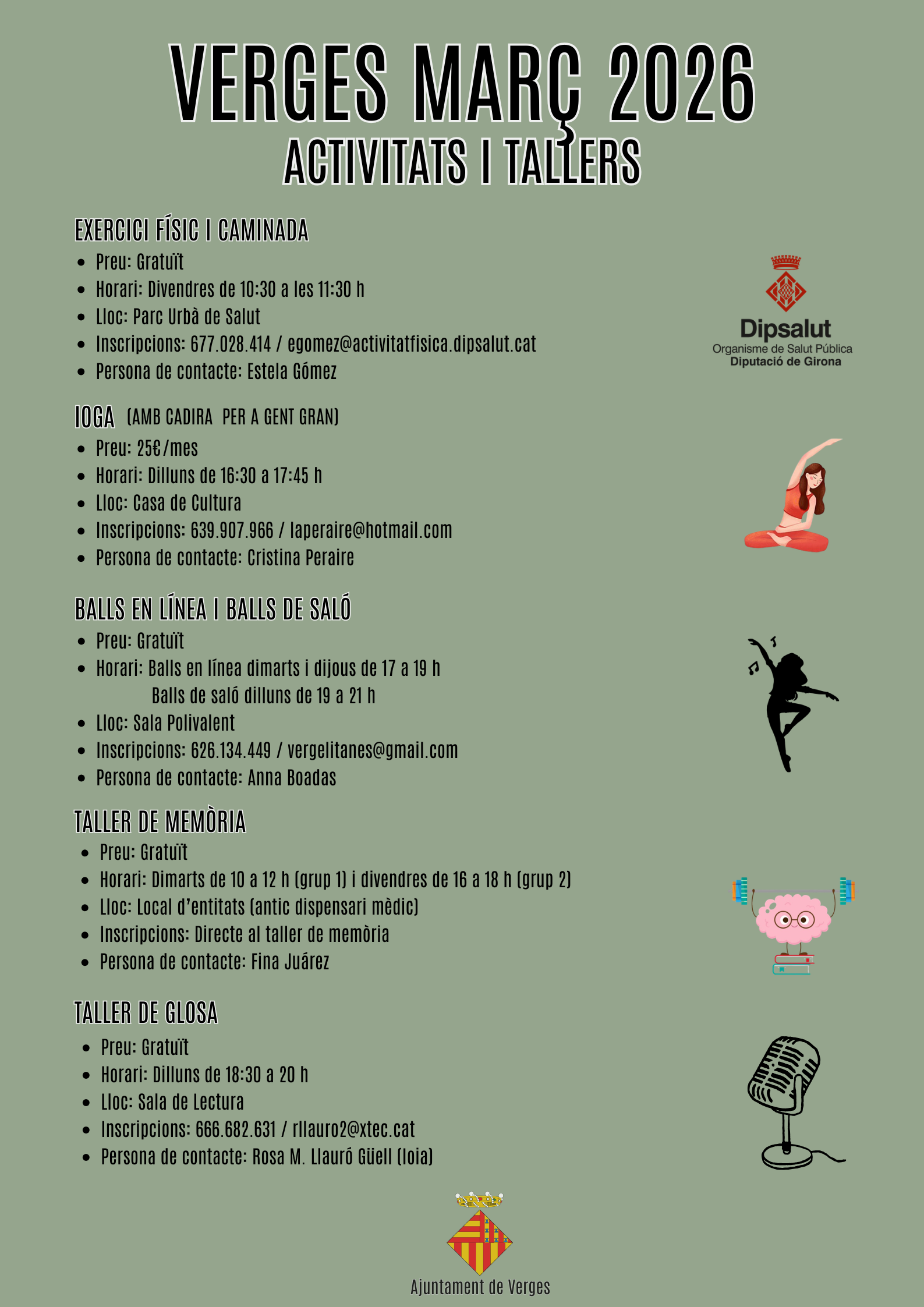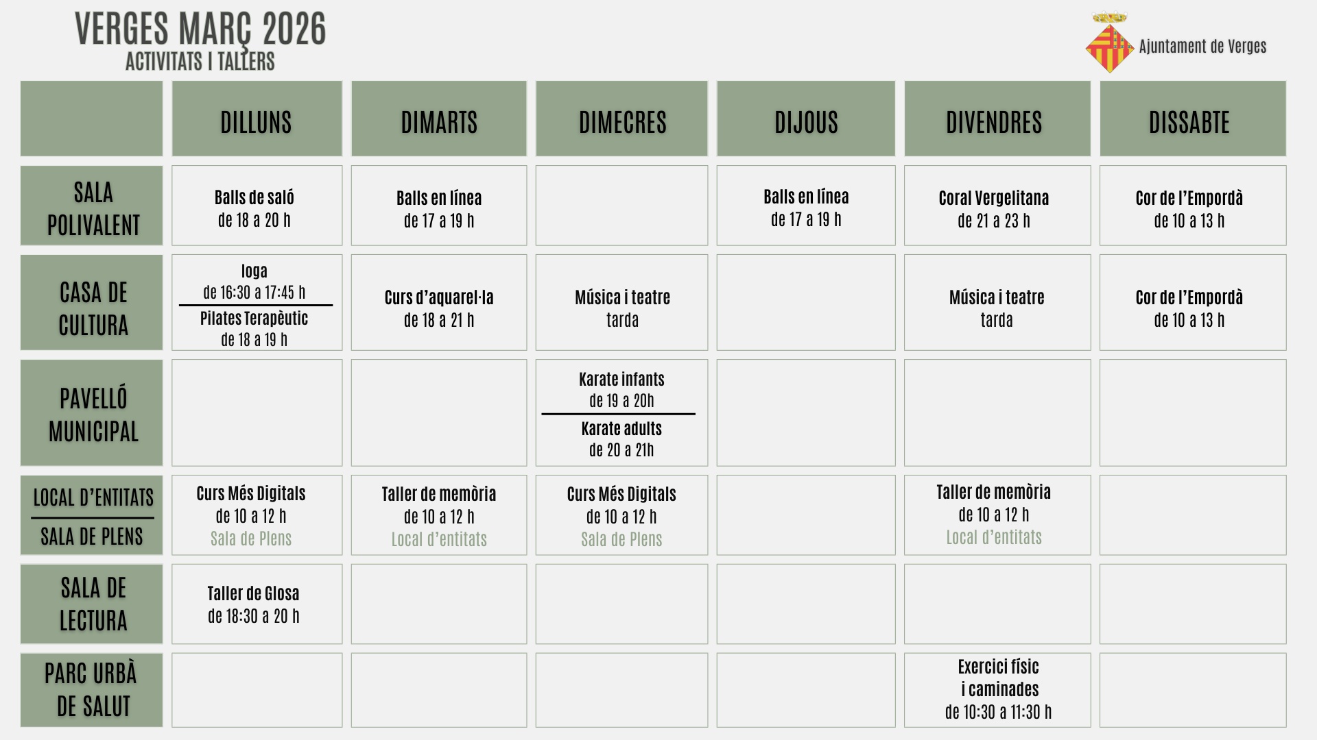 Us deixem l’agenda d’activitats i/o tallers del proper mes de març que es realitzaran al nostre municipi.