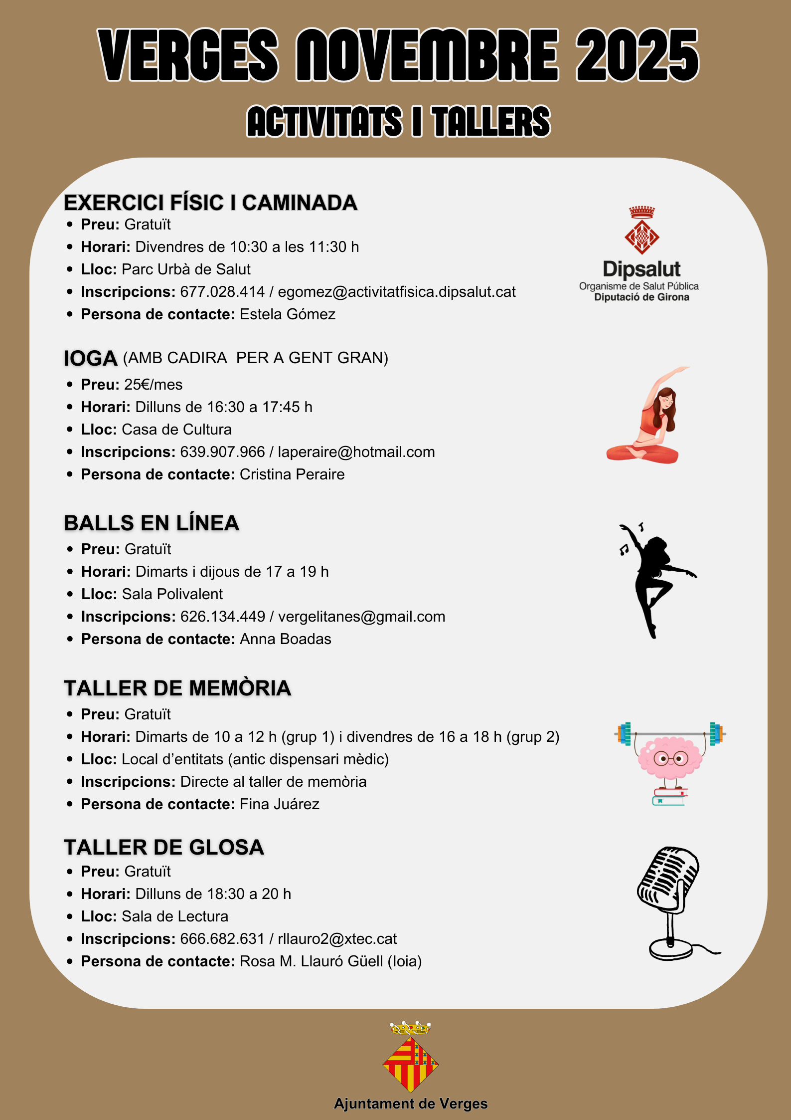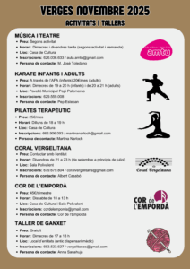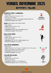 Actualitat, Agenda Agenda d’activitats novembre 2025 01/11/2025 - 30/11/2025 Us deixem l’agenda d’activitats i/o tallers del proper mes de novembre que es realitzaran al nostre municipi. Com sempre, us animem a participar-hi! < Entrada AnteriorEntrada Posterior >