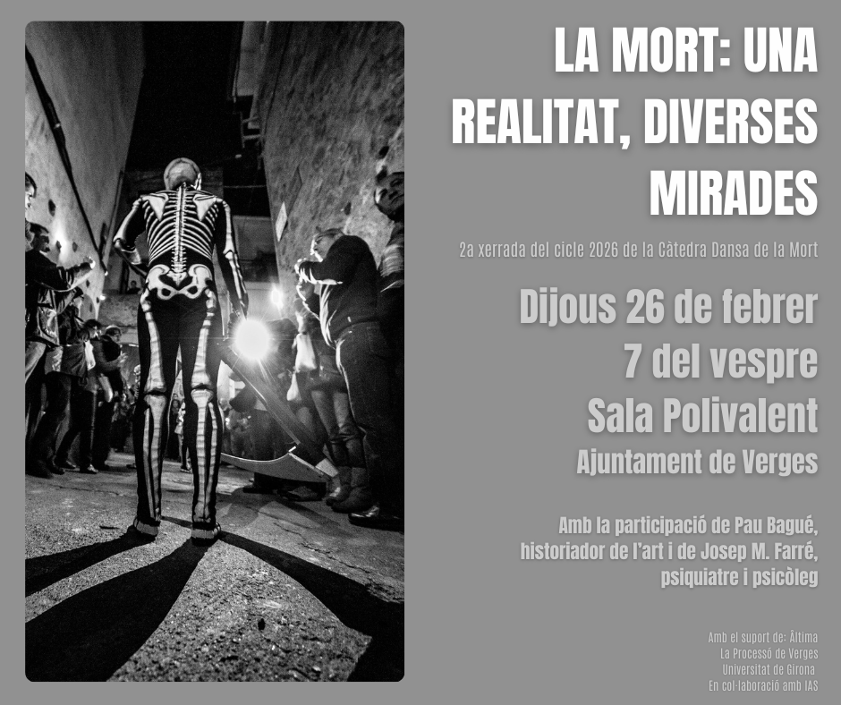 “La mort: una realitat, diverses” mirades és la segona xerrada del cicle 2026 de la Càtedra Dansa de la Mort. Una proposta que ens convida a reflexionar sobre la mort des de diferents perspectives -artística, psicològica i antropològica- per comprendre millor el seu significat en la nostra vida. L’acte tindrà lloc el dijous 26 de […]
