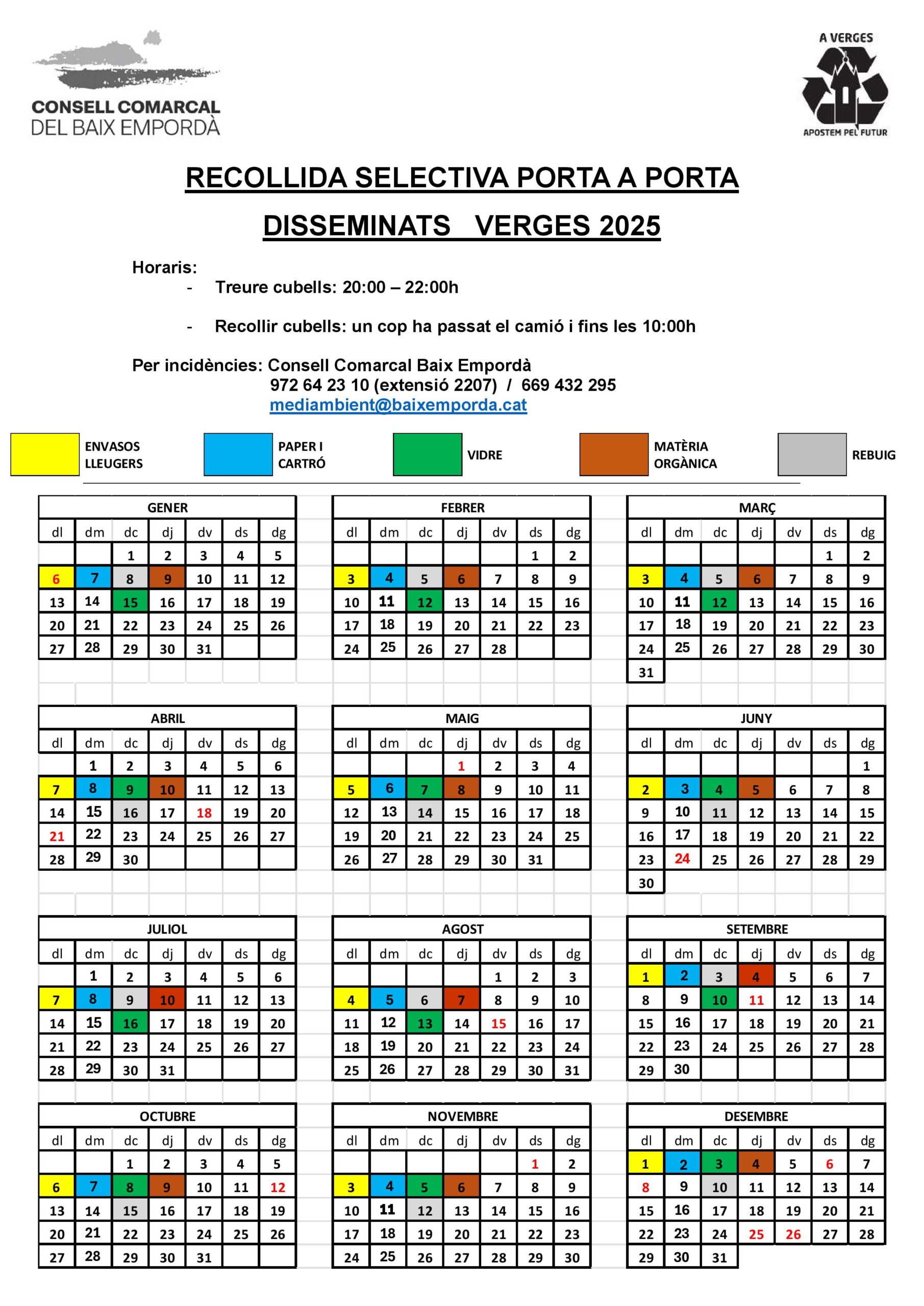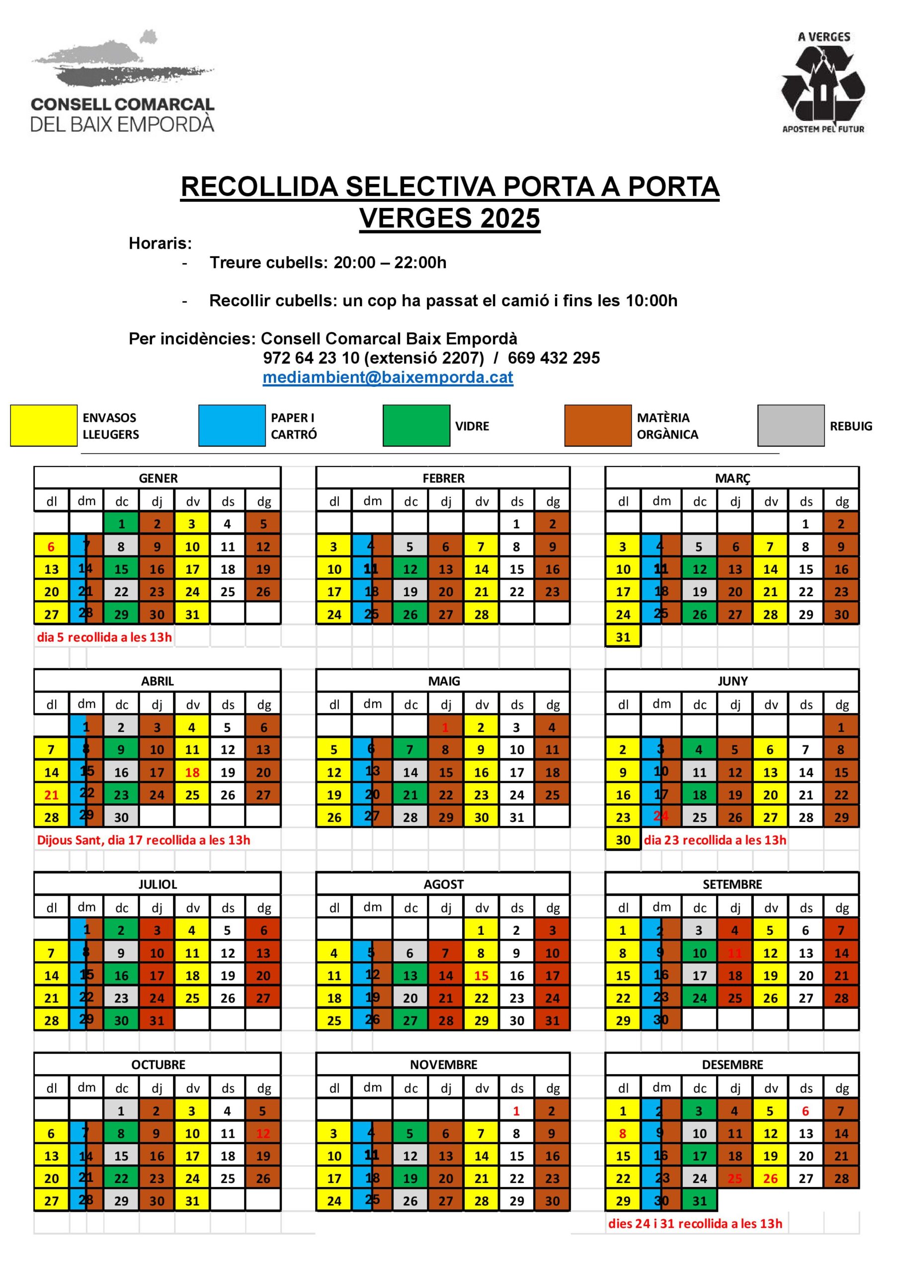 - Calendari recollida selectiva Porta a Porta 2025 Verges