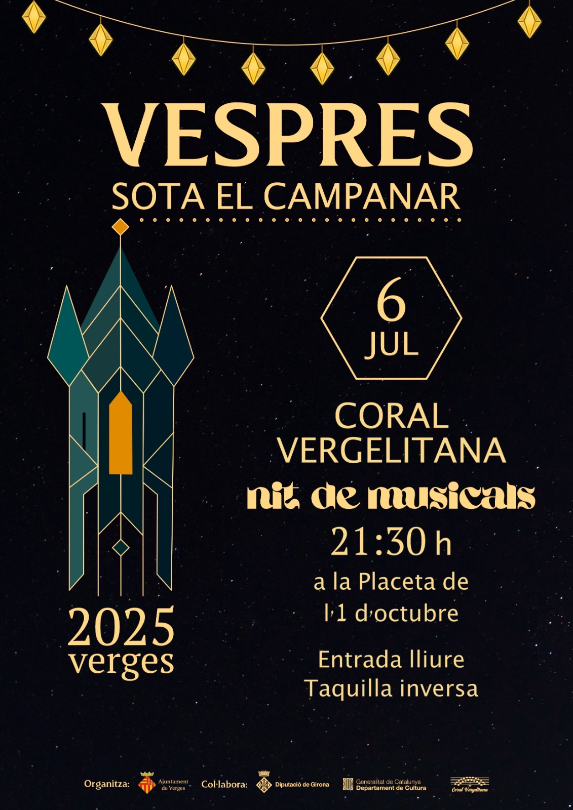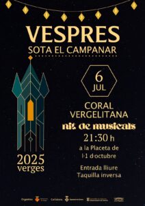 Diumenge 6 de juliol, a 2/4 de 10 de la nit a la Placeta de l’1 d’octubre de Verges, podrem gaudir del tradicional concert de La Coral Vergelitana.