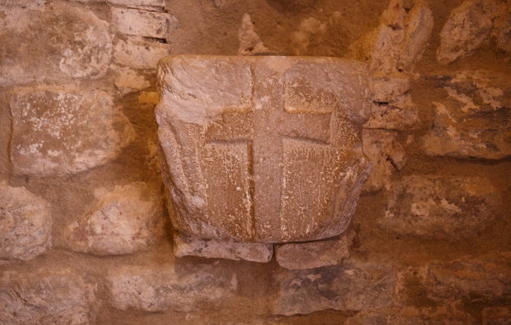 A voussoir gate of later chronology is used as the main entrance to the building. Inside, it is worth mentioning three files of blinded arches that reinforce the lateral walls and support the barrel vault. These structures, together with the exterior buttresses, affected the primitive structure of the building and the main access gate to the north, at present halfway covered.