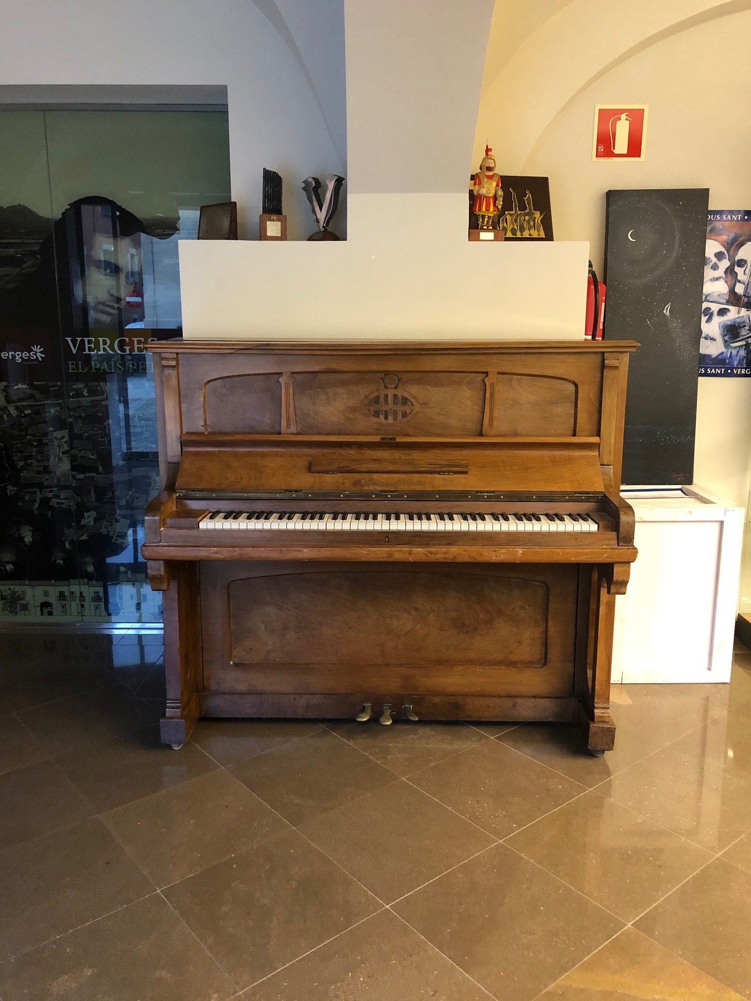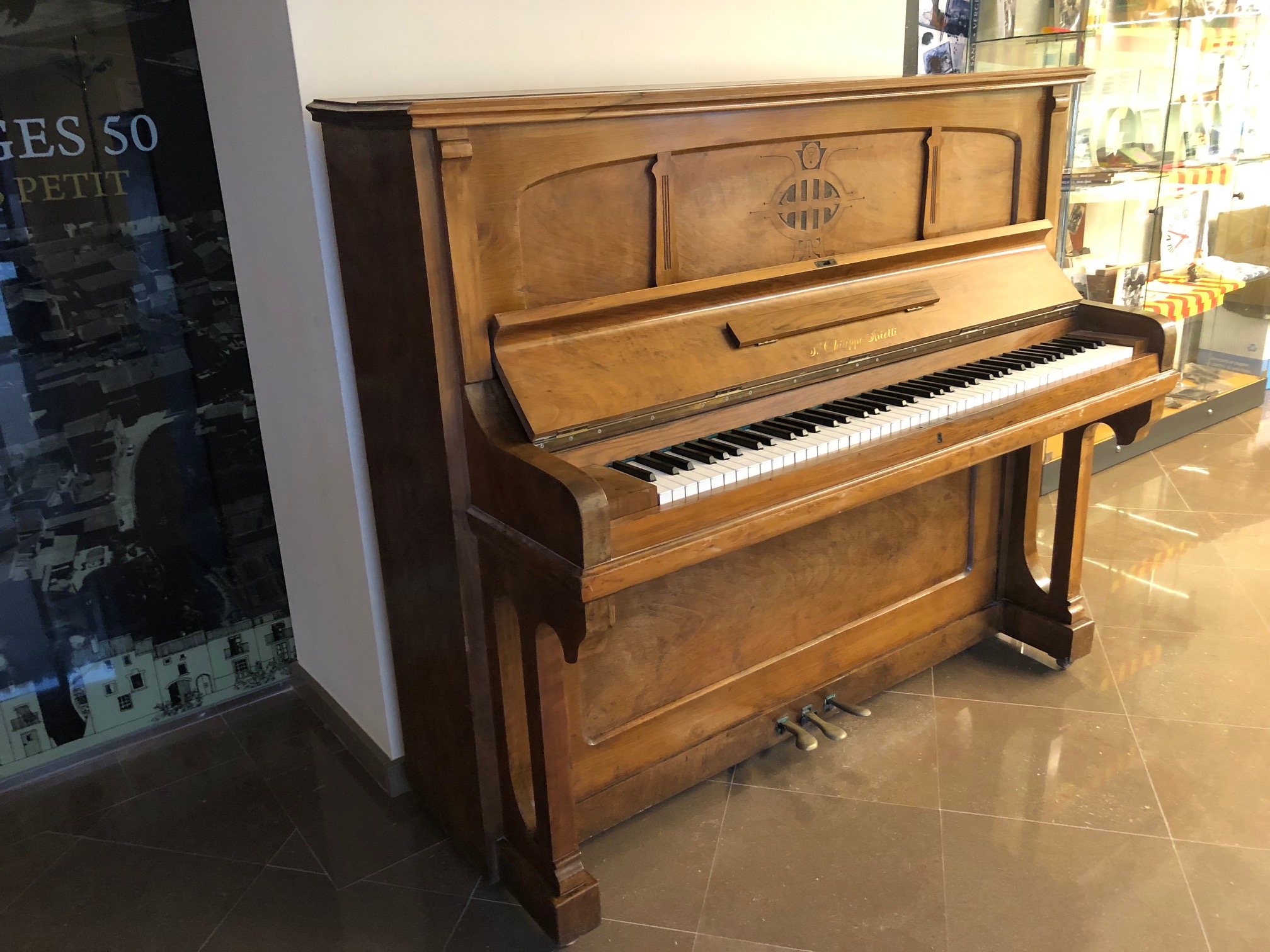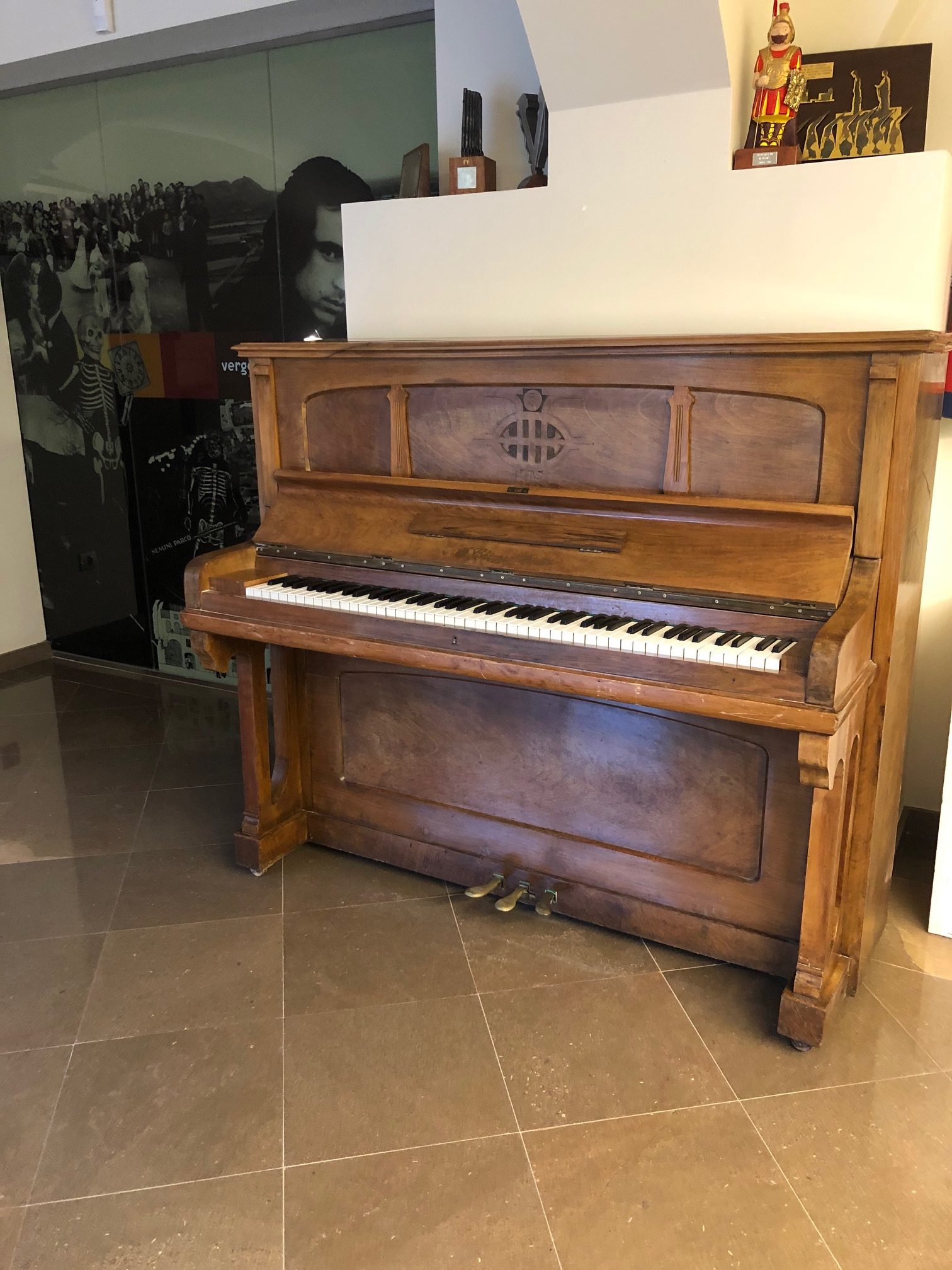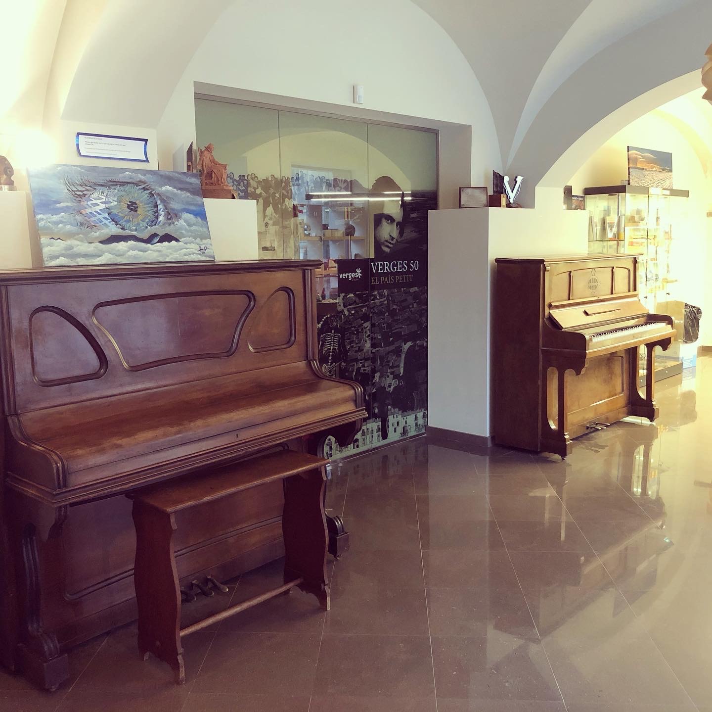 El podeu veure al Centre de Visitants de Verges, juntament amb el piano d’en Lluís Llach.