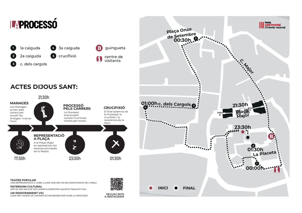 Amb motiu de la celebració de la tradicional processó de Dijous Sant, l’Ajuntament posa a disposició de veïns i visitants el plànol informatiu amb els principals punts d’interès i el recorregut de l’acte.