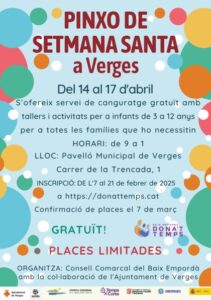 Des del projecte “Dona’t Temps” del Consell Comarcal del Baix Empordà s’ofereix el servei de canguratge gratuït amb taller i activitats a Verges. El servei és gratuït i té places limitades.