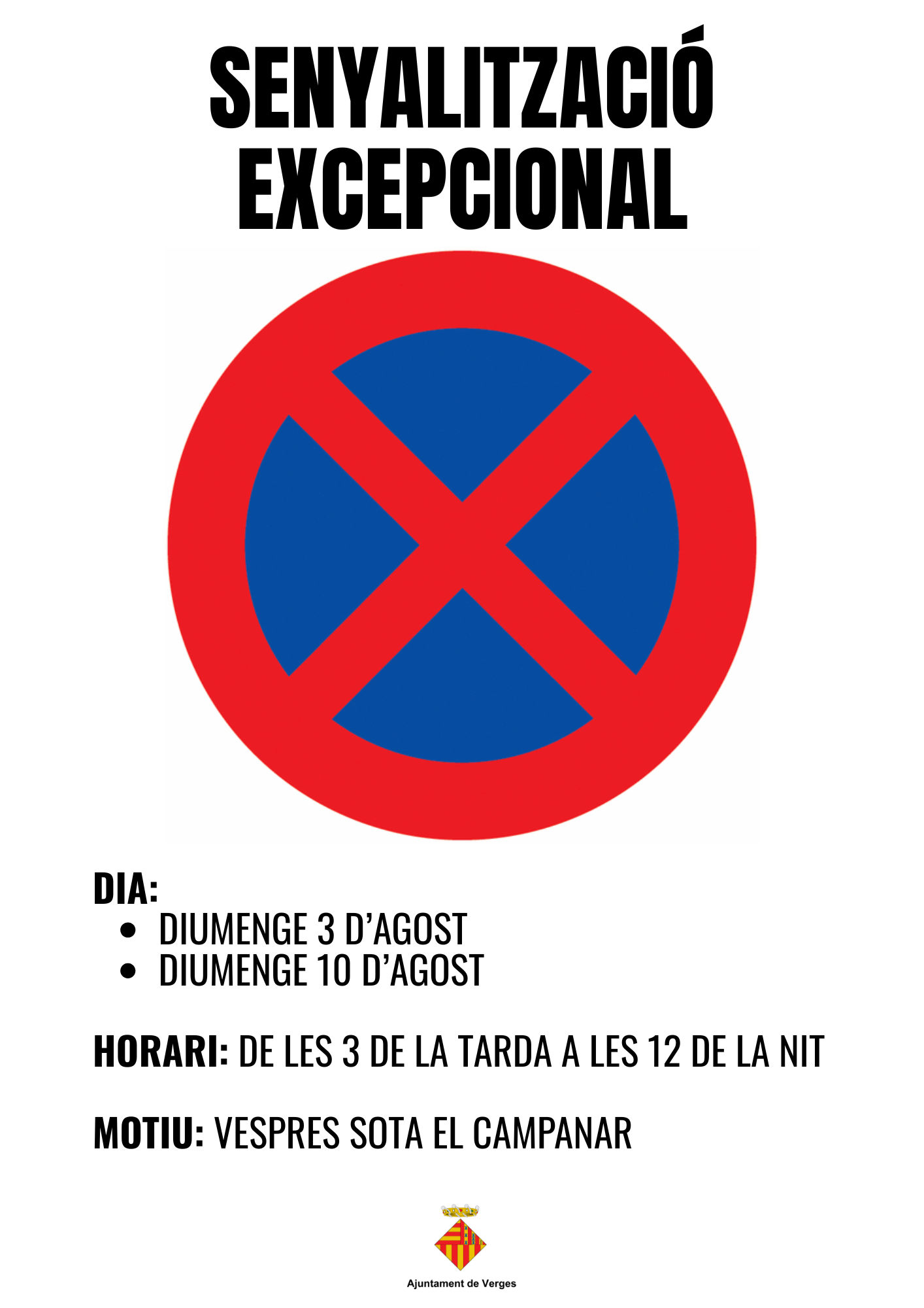 Senyalització excepcional amb motiu dels actes de Vespres sota el campanar