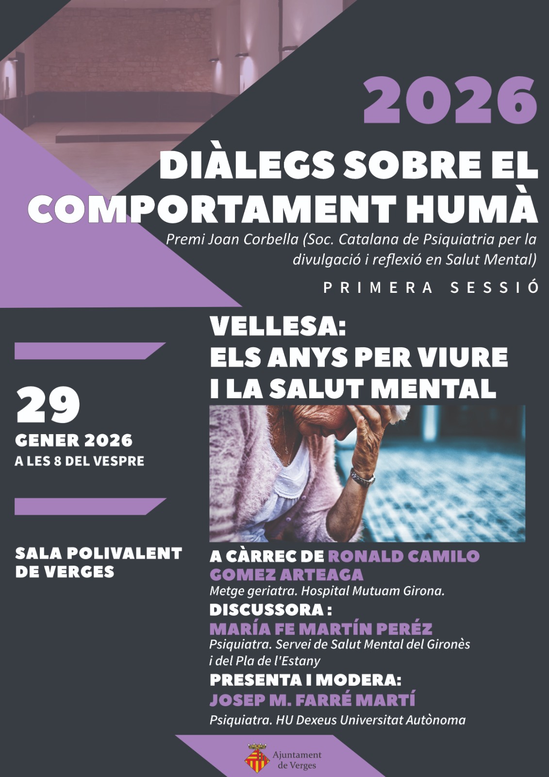 Aquesta primera sessió anirà dedicada a reflexionar sobre la vellesa i la salut mental, una temàtica cada vegada més present i rellevant en la nostra societat. La xerrada anirà a càrrec de Ronald Camilo Gómez Arteaga, metge geriatra de l’Hospital Mutuam Girona, que aportarà la seva visió i experiència professional en l’atenció a les persones grans.