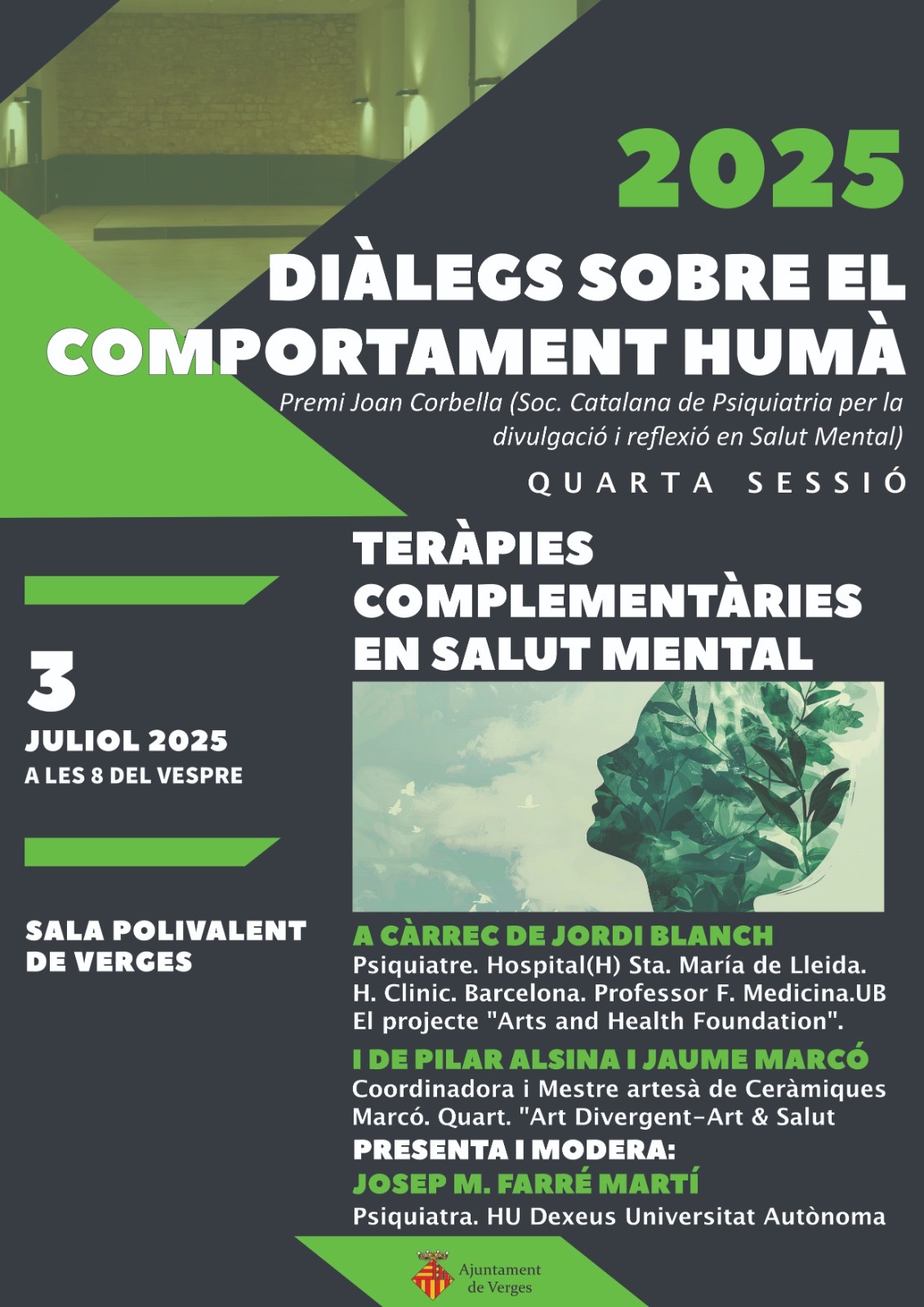 Dijous 3 de juliol, a les 8 del vespre a la Sala Polivalent de Verges, tindrem una nova sessió del cicle de “Diàlegs sobre el comportament humà”.